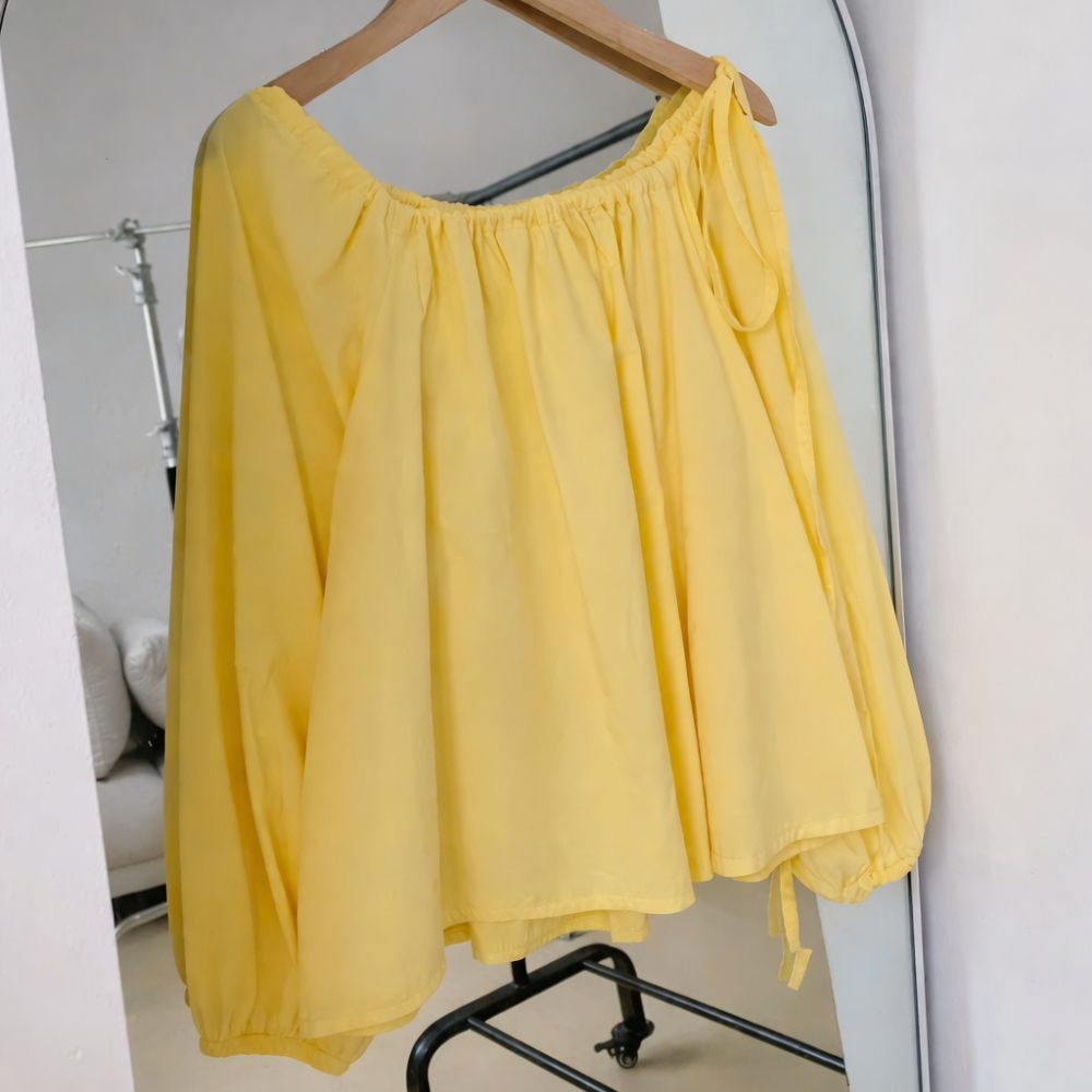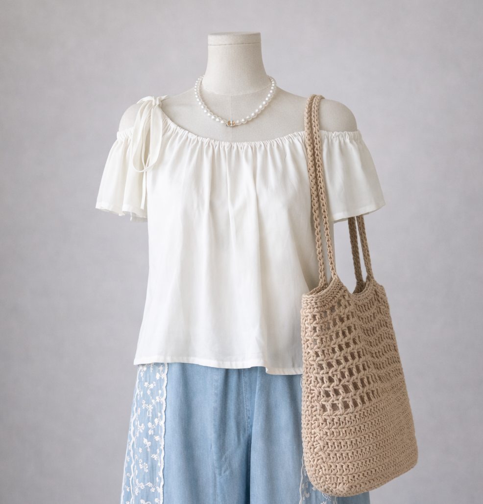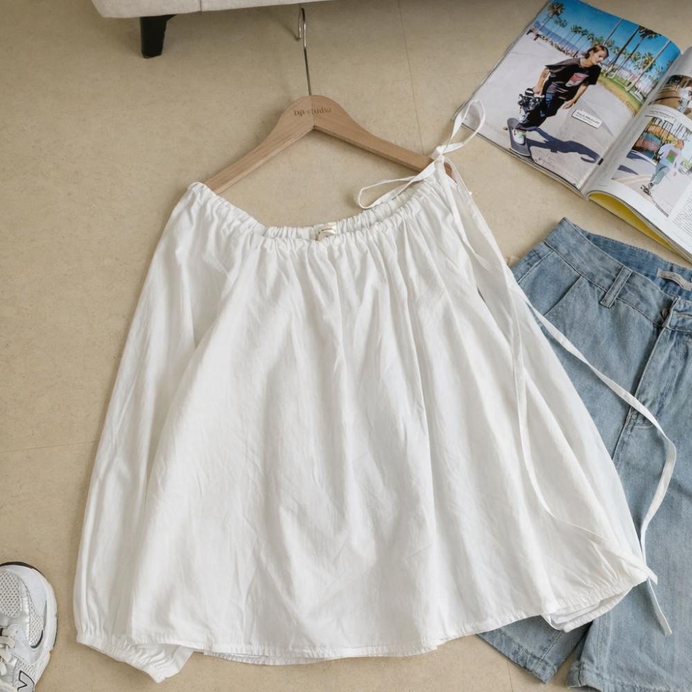 - Thiết kế bẹt vai (trễ vai) giúp khoe vai và xương quai xanh tinh tế