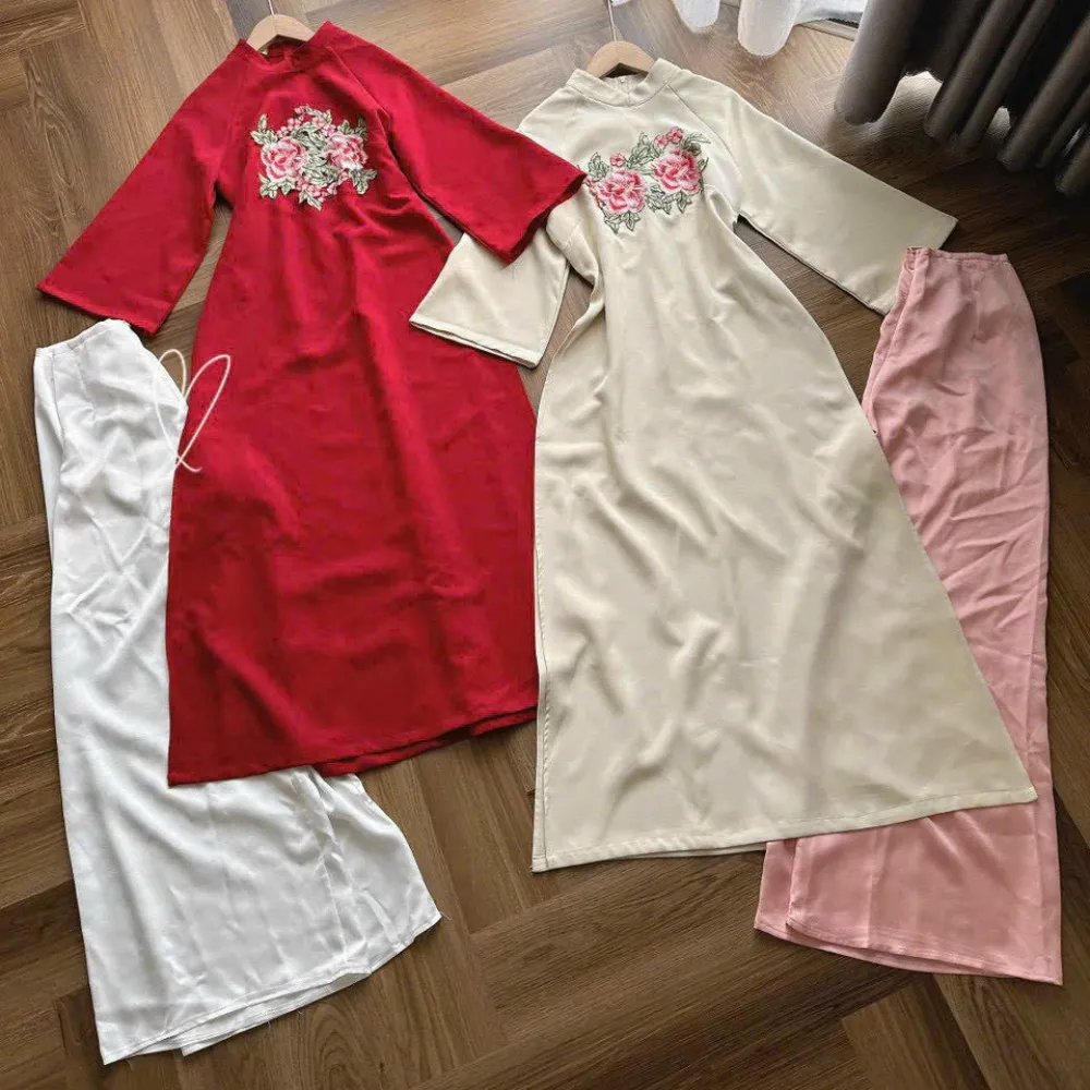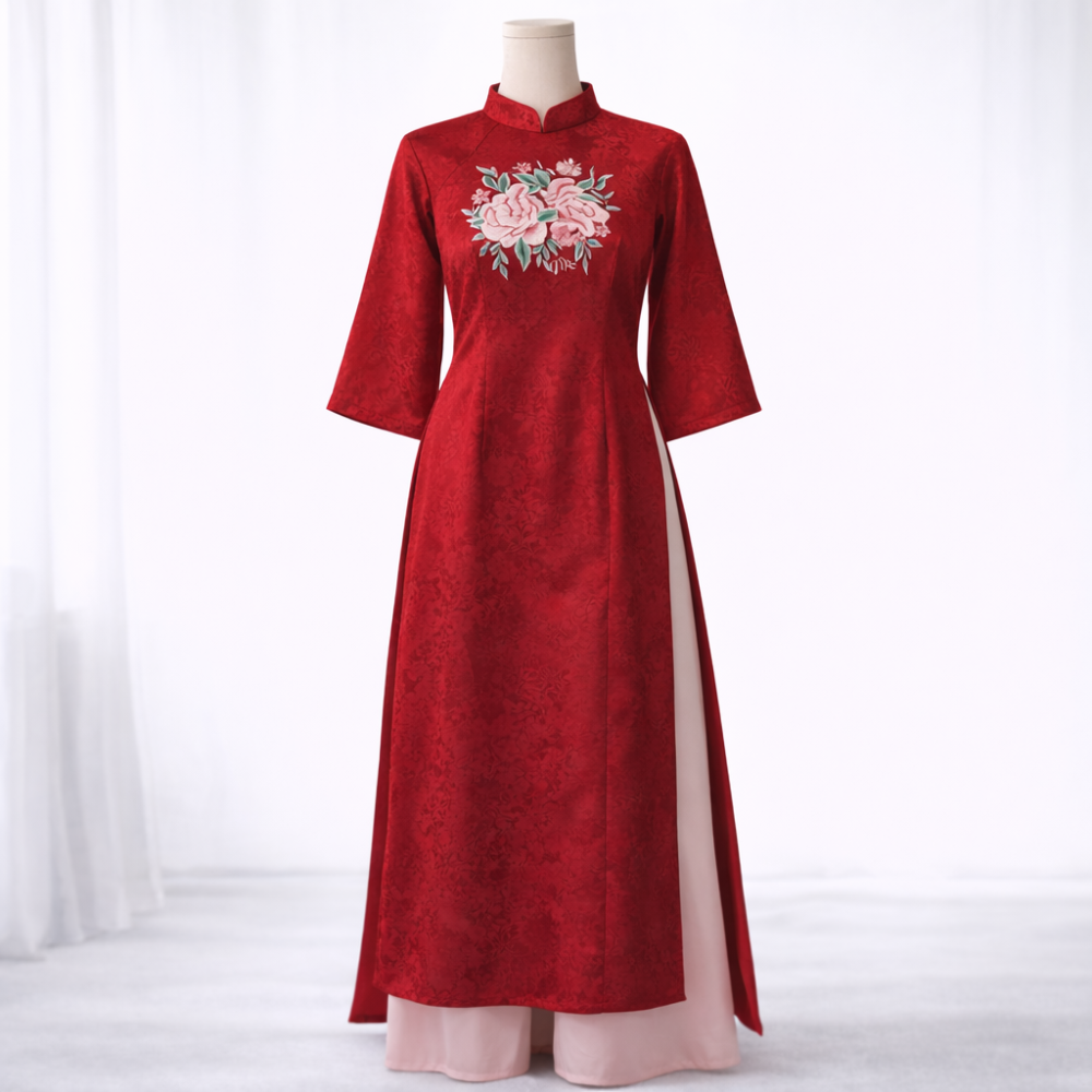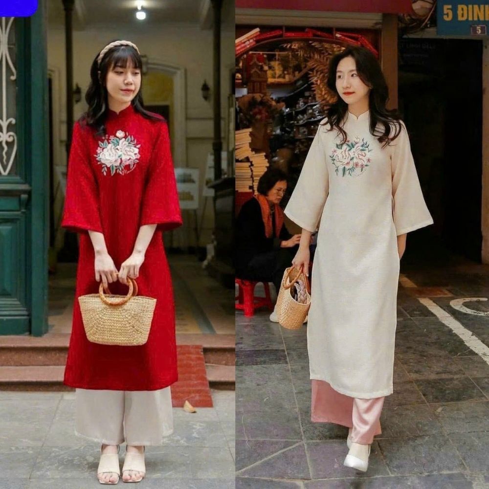 - Họa tiết thêu hoa tinh tế, tạo điểm nhấn nổi bật