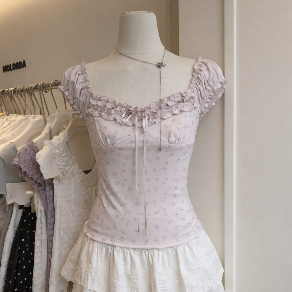 Áo kiểu hoa nhí trễ vai nữ tính ✨