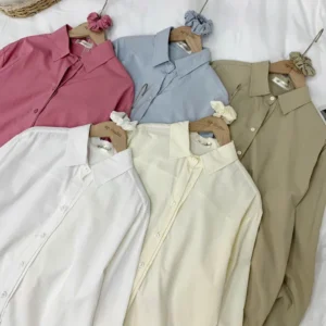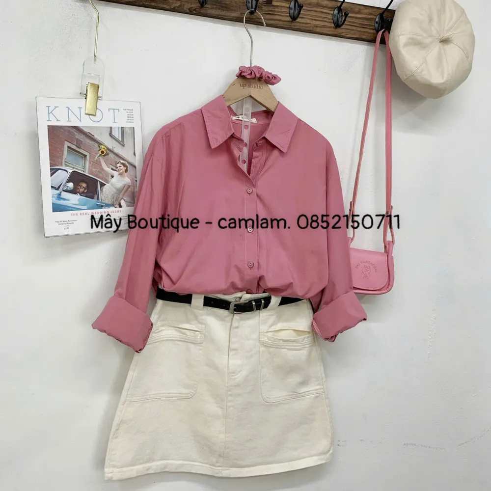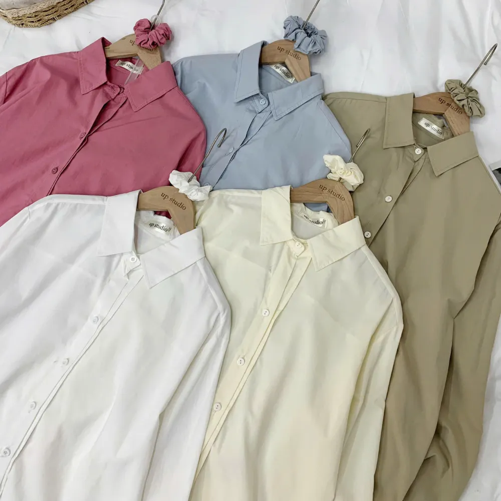 - Thiết kế sơ mi trơn basic, form đơn giản dễ mặc