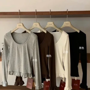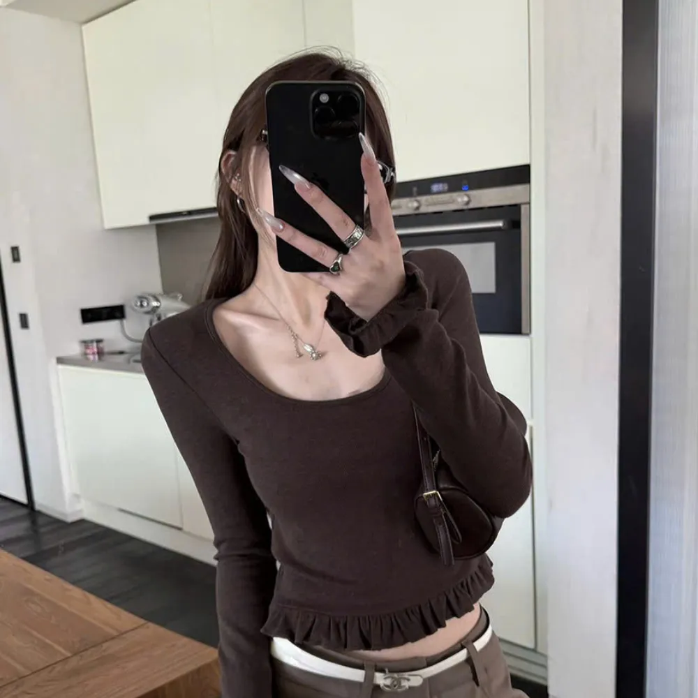 - Viền bèo dưới áo tạo độ xòe nhẹ, thêm nét nữ tính