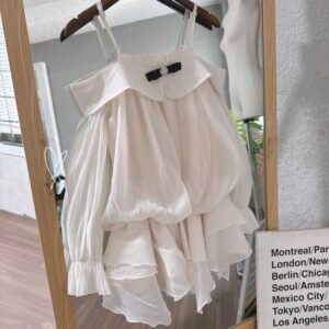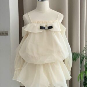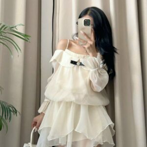 - Thiết kế 2 dây + tay dài rớt vai, khoe vai nhẹ nhàng