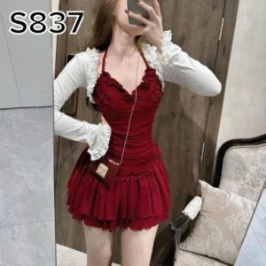 SET ĐẦM 2S REN + ÁO KHOÁC ĐEN-L